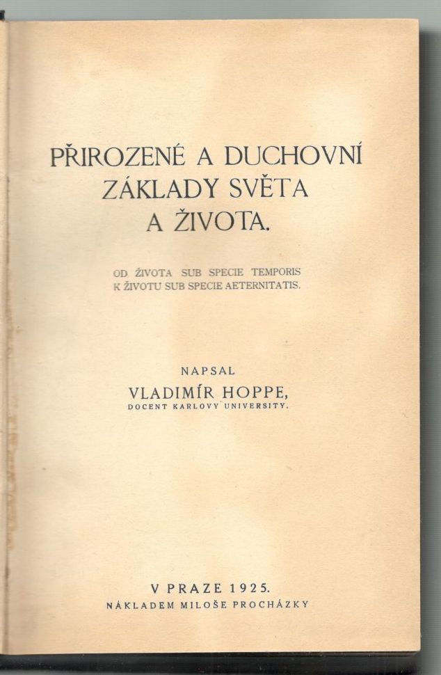 Hoppe Vladimír, Přirodzené a duchovní základy světa a života